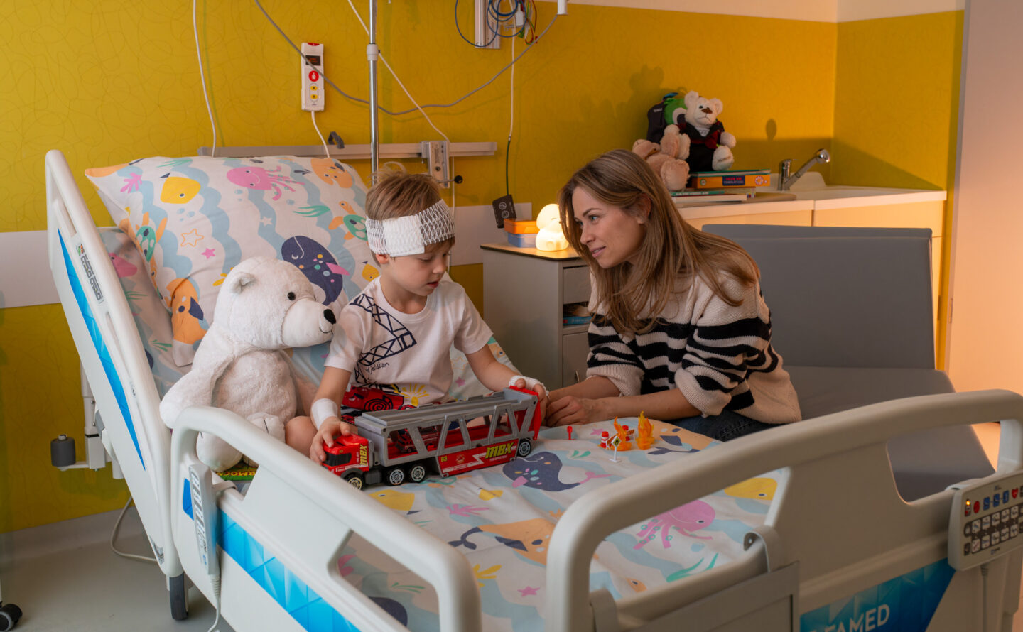 Szpital przyjazny rodzinie zaczyna się od łóżka dla rodzica. Wspólnie z donatorami wspierającymi naszą misję „Aby rodzina mogła być razem” nie chcemy odkładać na później potrzeb dziecka–pacjenta i jego najbliższych. Przekazywane łóżka są wygodne, praktyczne, a przede wszystkim postawione blisko łóżka chorego dziecka. Fundacja Ronalda McDonalda zmienia w ten sposób rzeczywistość publicznych szpitali dziecięcych.